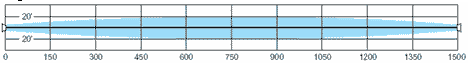 Ширину зоны обнаружения можно менять в диапазоне от 0,6 м. до 12,2 м. Высота зоны обнаружения меняется в соответствии с её шириной. Возможность регулирования ширины зоны обнаружения позволяет легко адаптироваться к различным характеристикам местности.