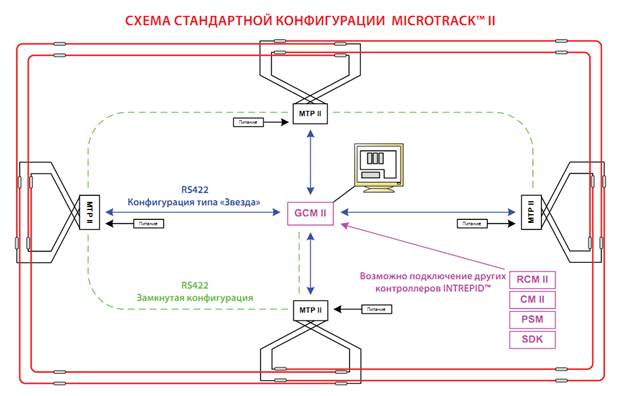 Процессорные модули MicroTrack™ II легко объединяются в сеть посредством последовательного интерфейса RS422, так как используют общий, открытый протокол связи - INTREPID™ Polling Protocol II (IPP II). Система INTREPID™ MicroPoint™ II, датчики MicroWave 330 и модули ввода/вывода также могут быть объединены в одну систему.